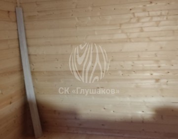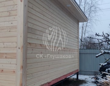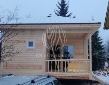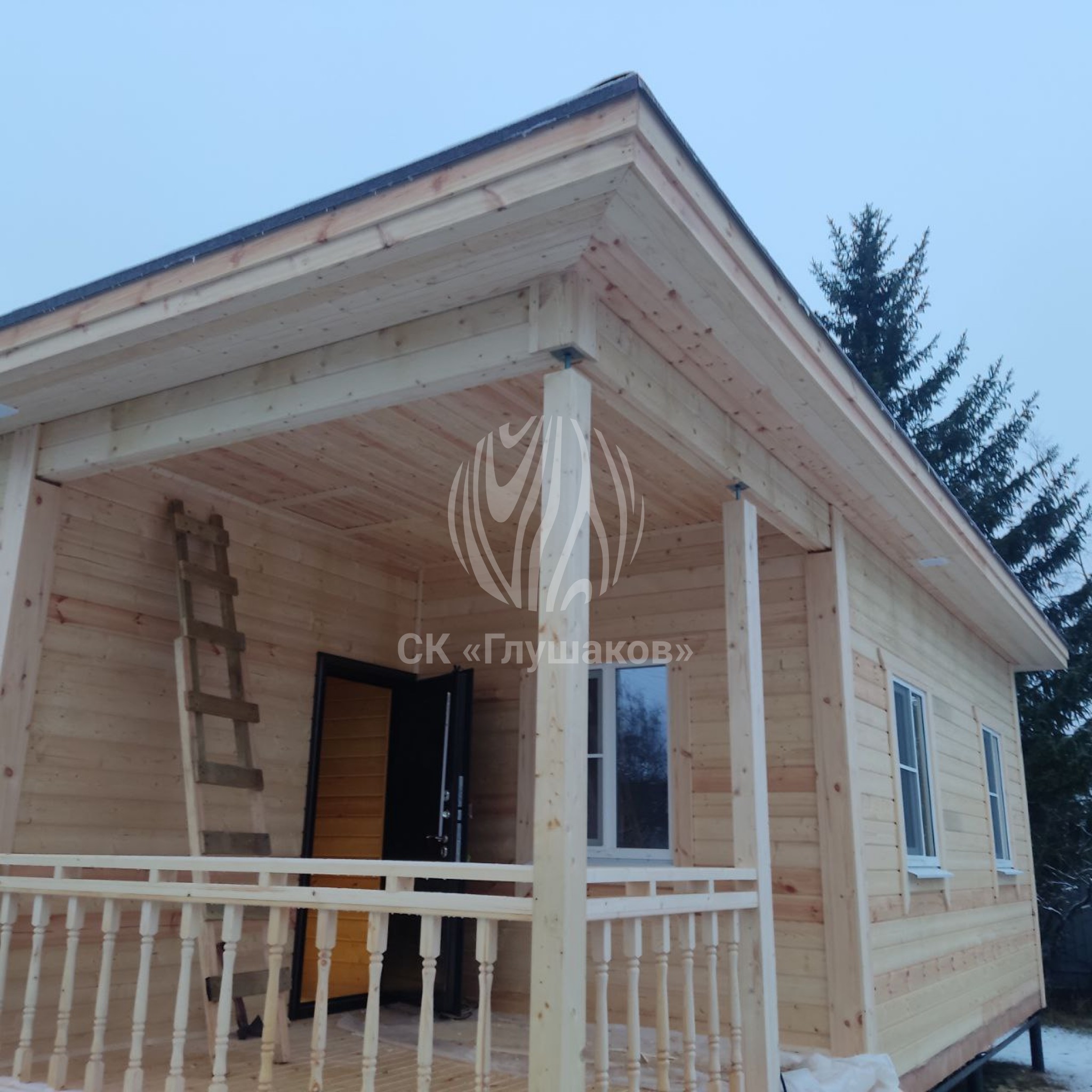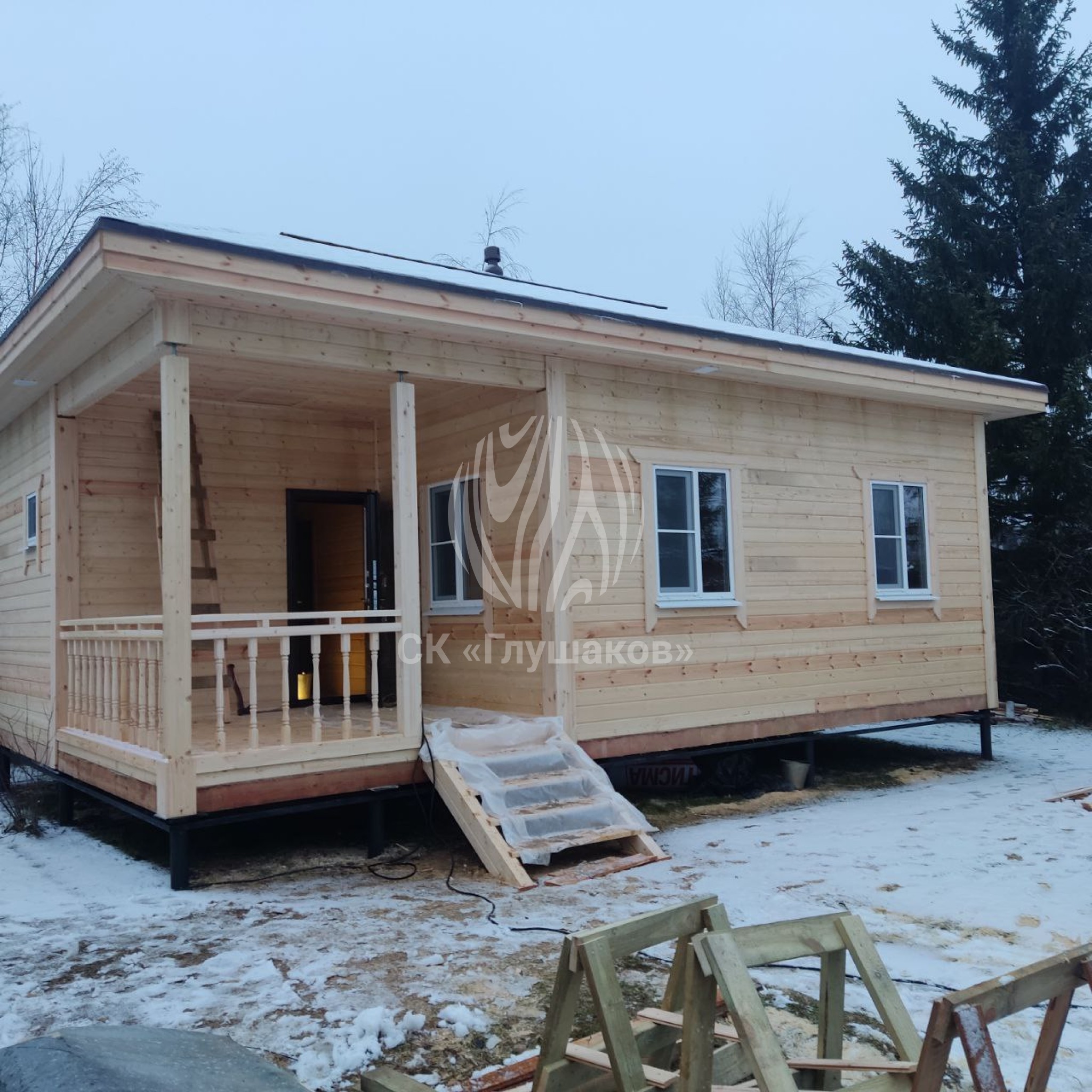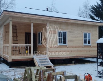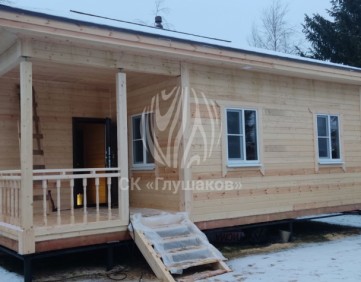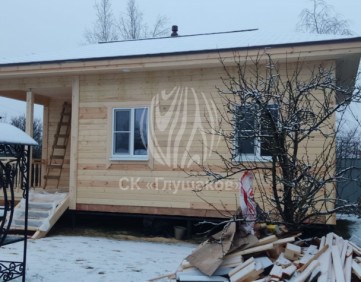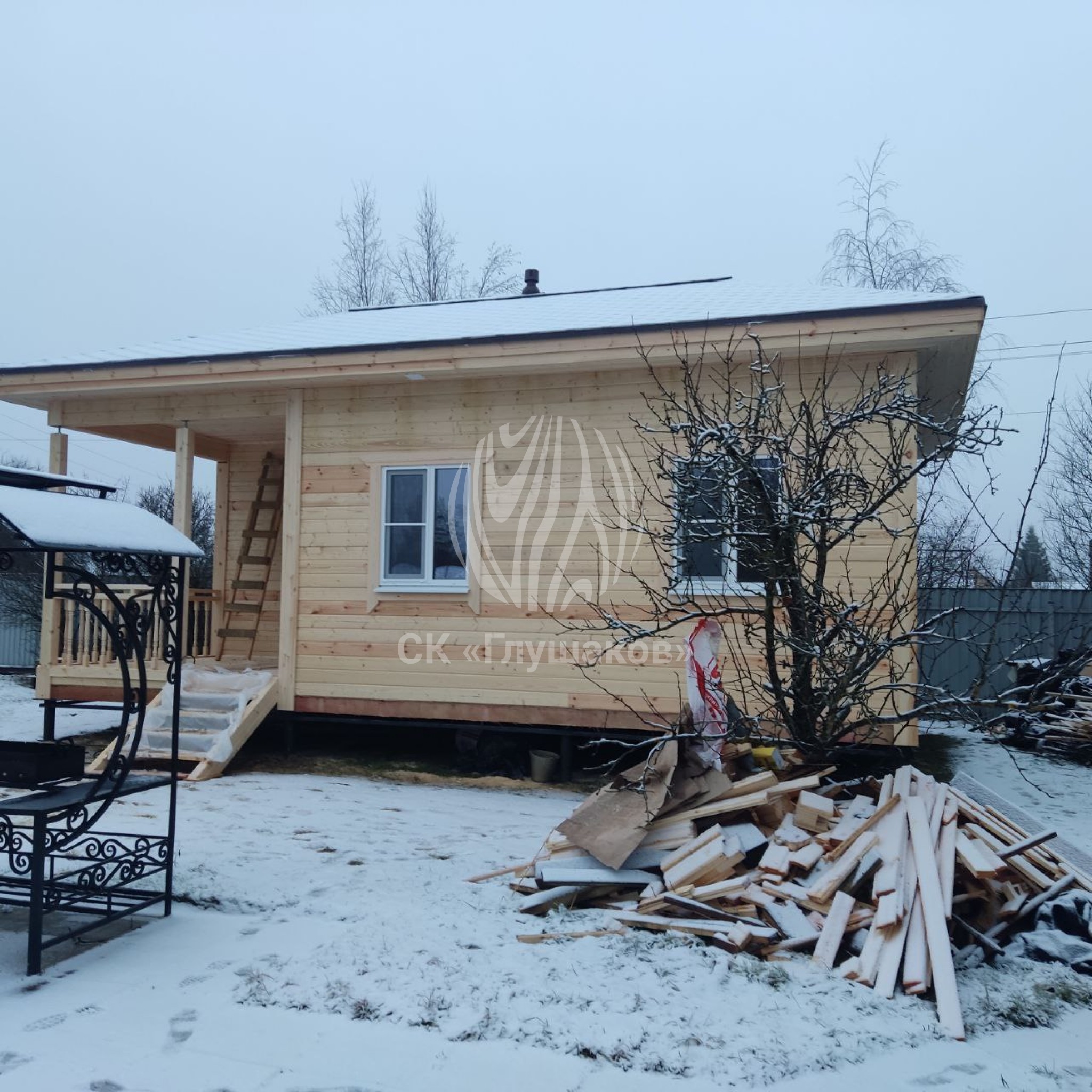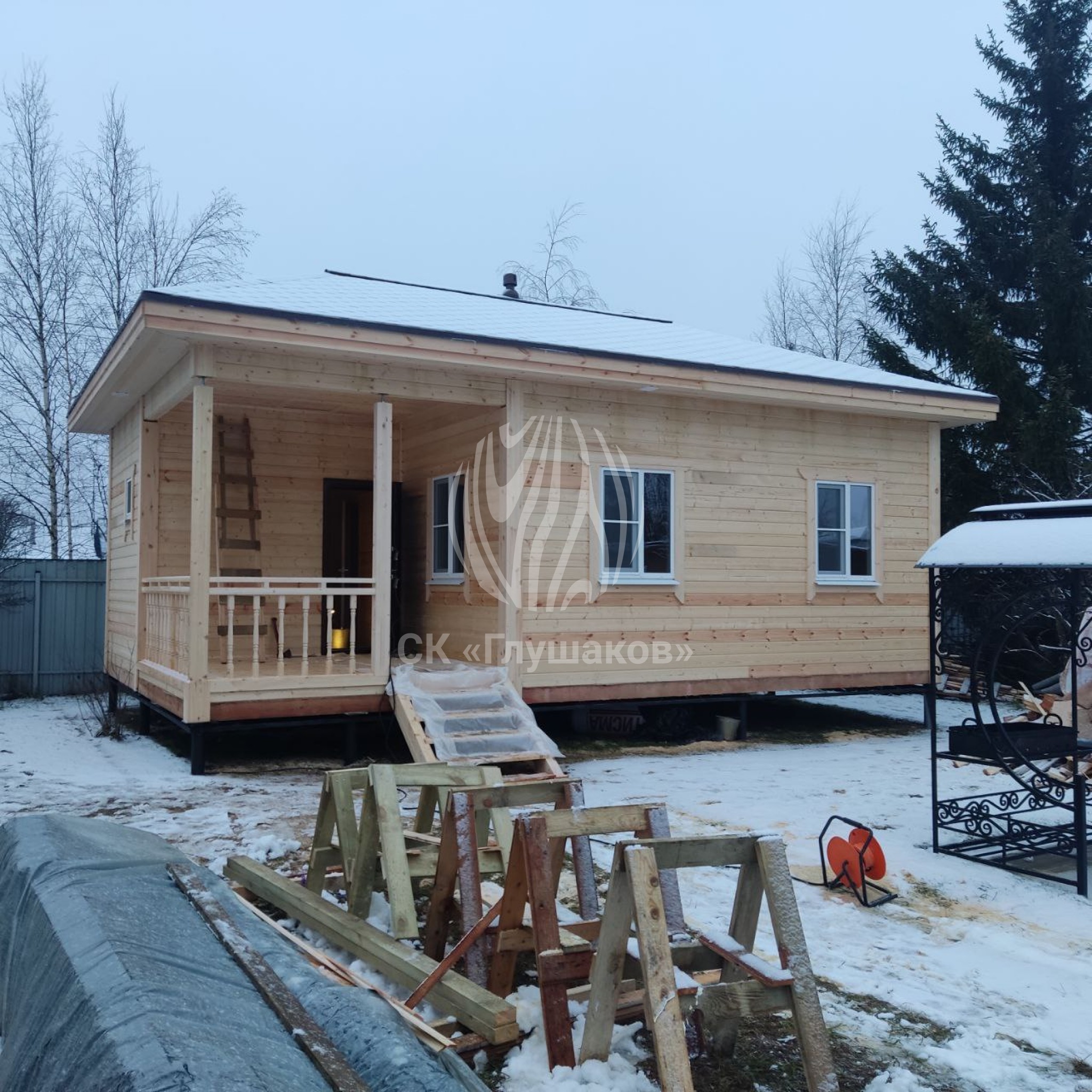 Баня 6 на 9 метров, клееный брус. Строили в деревне Бельское Талдомского района Московской области.