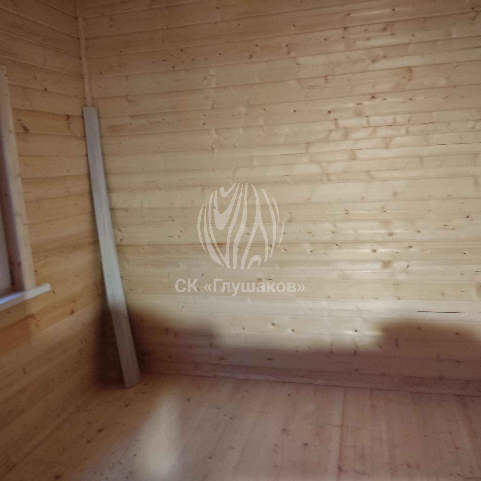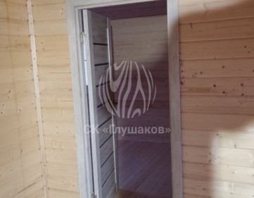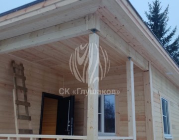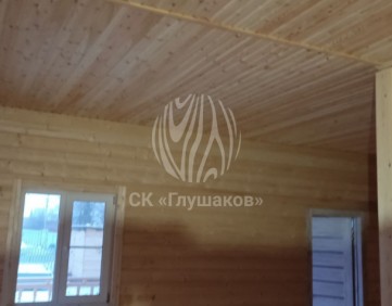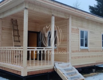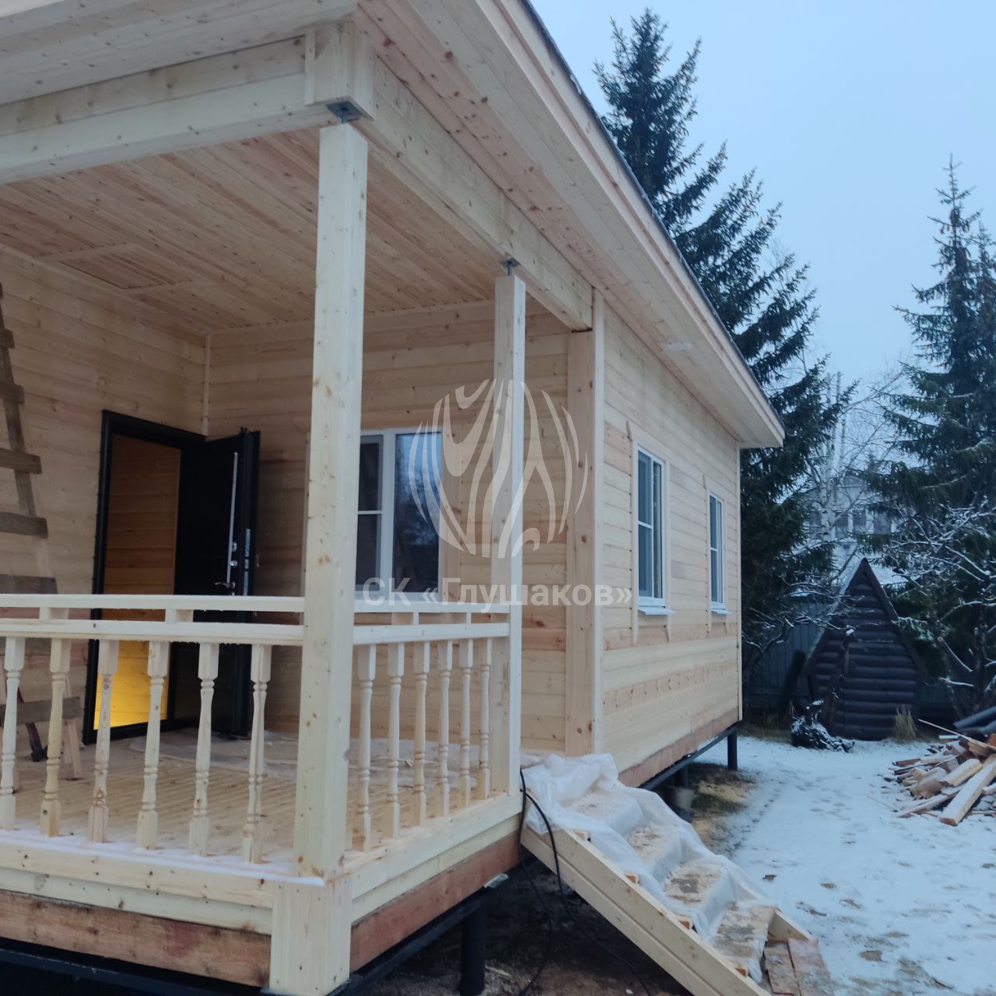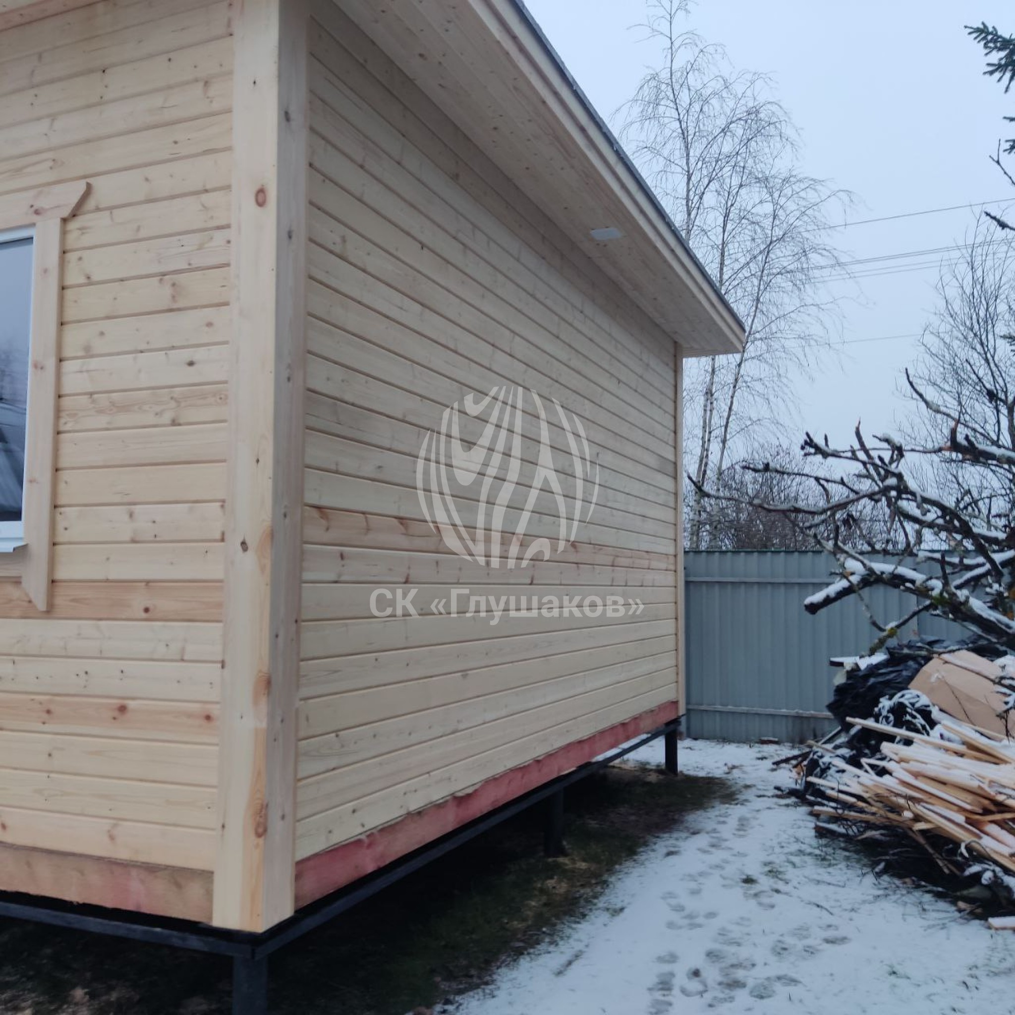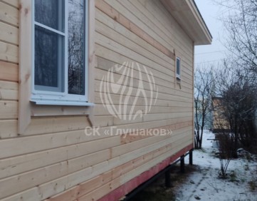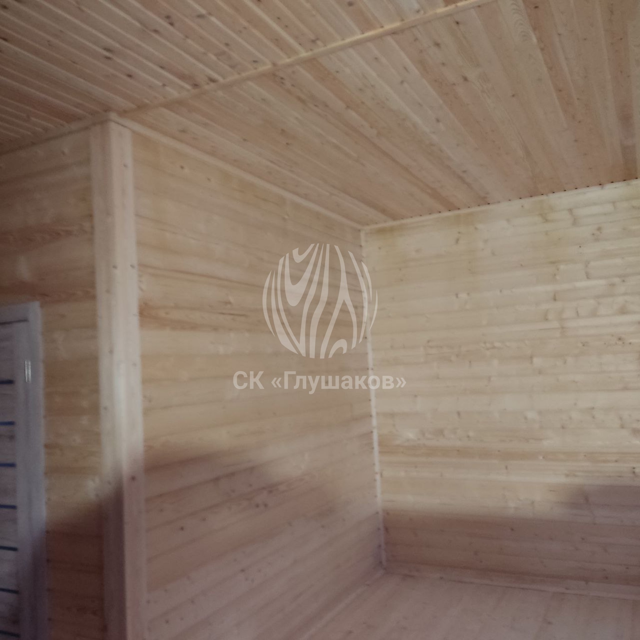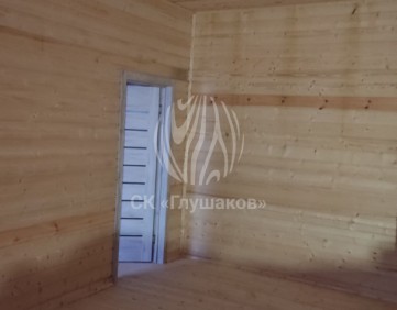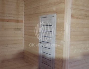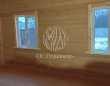Баня 6 на 9 метров, клееный брус. Строили в деревне Бельское Талдомского района Московской области.