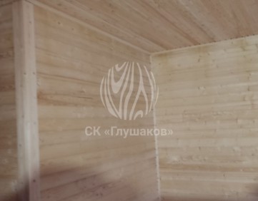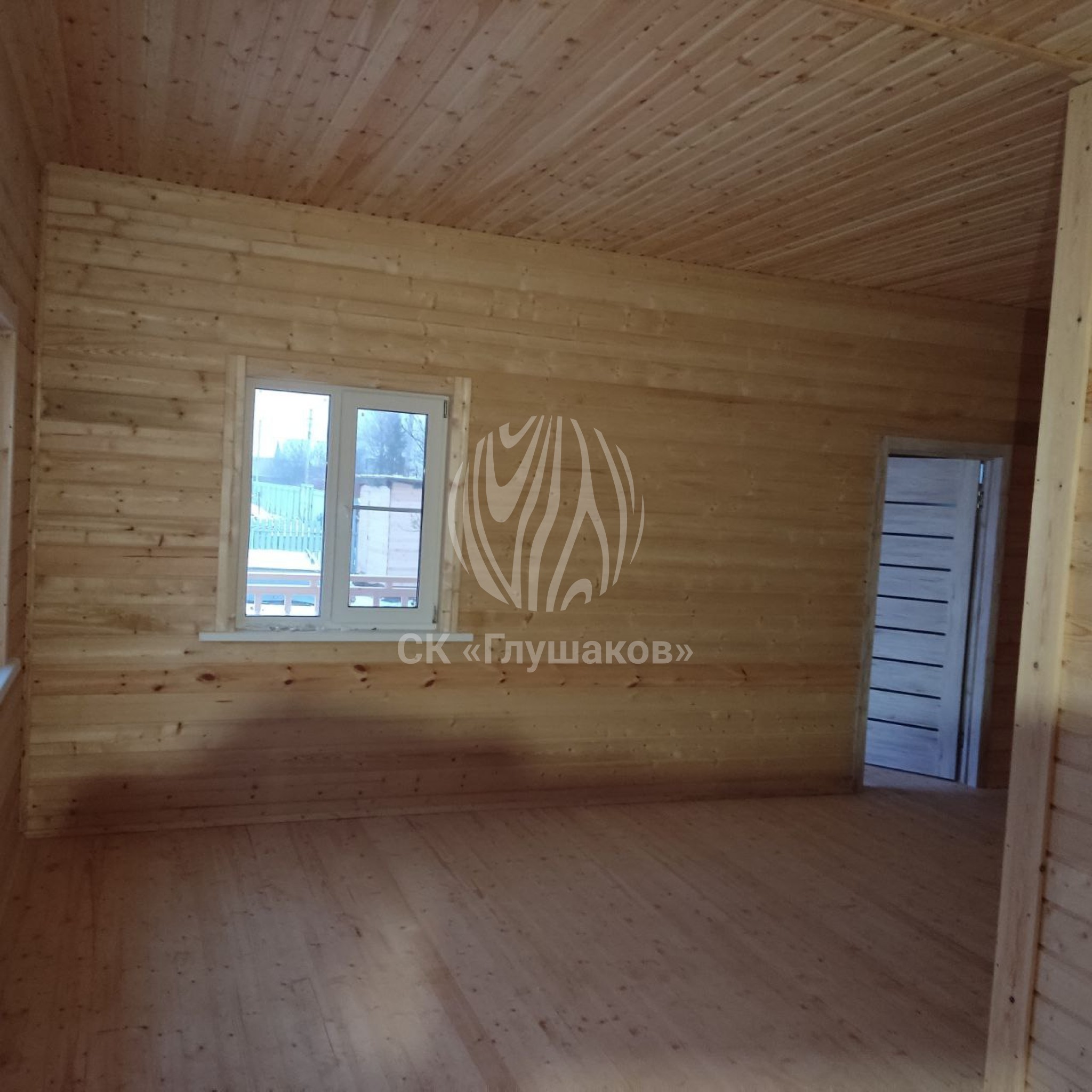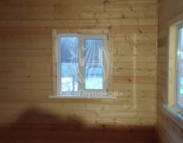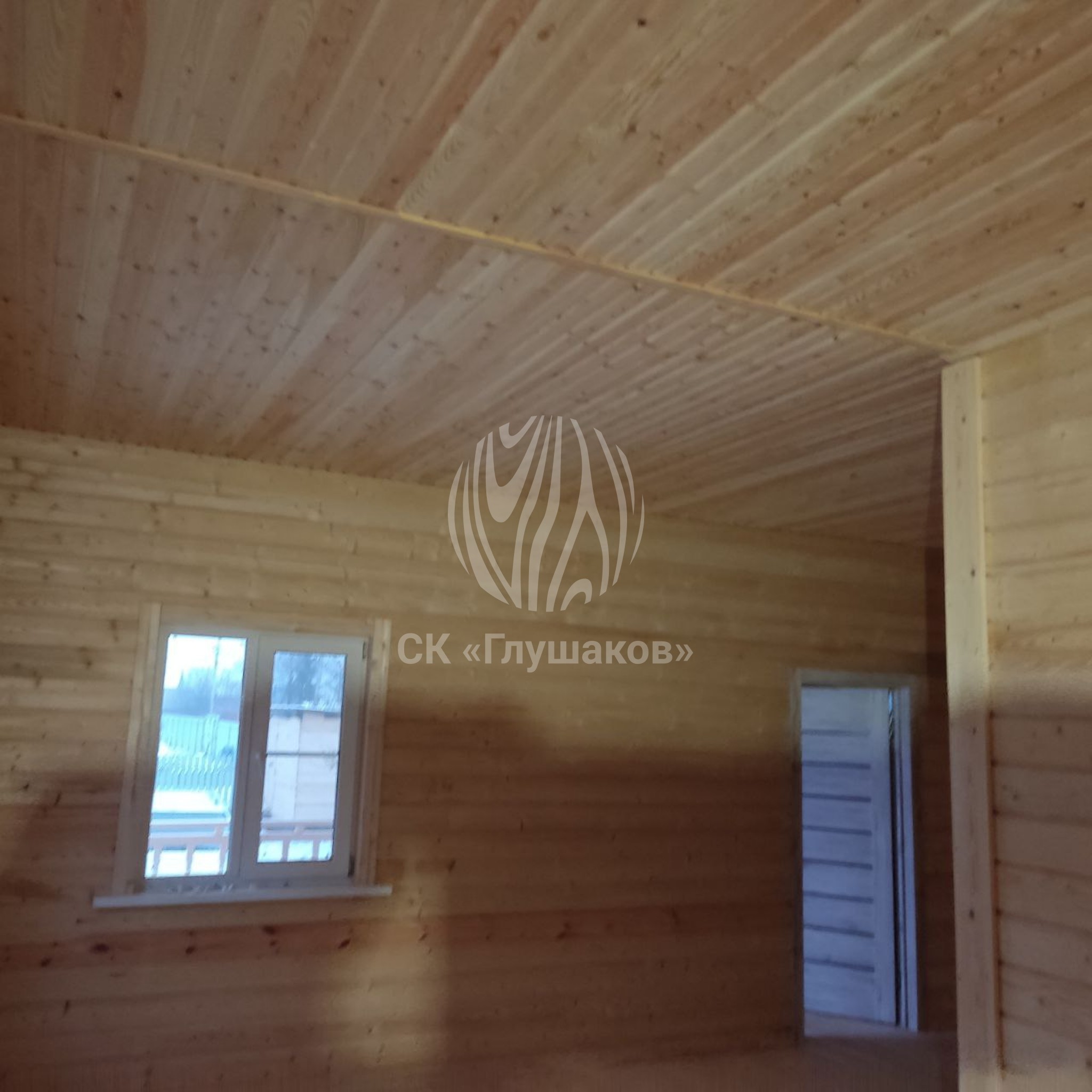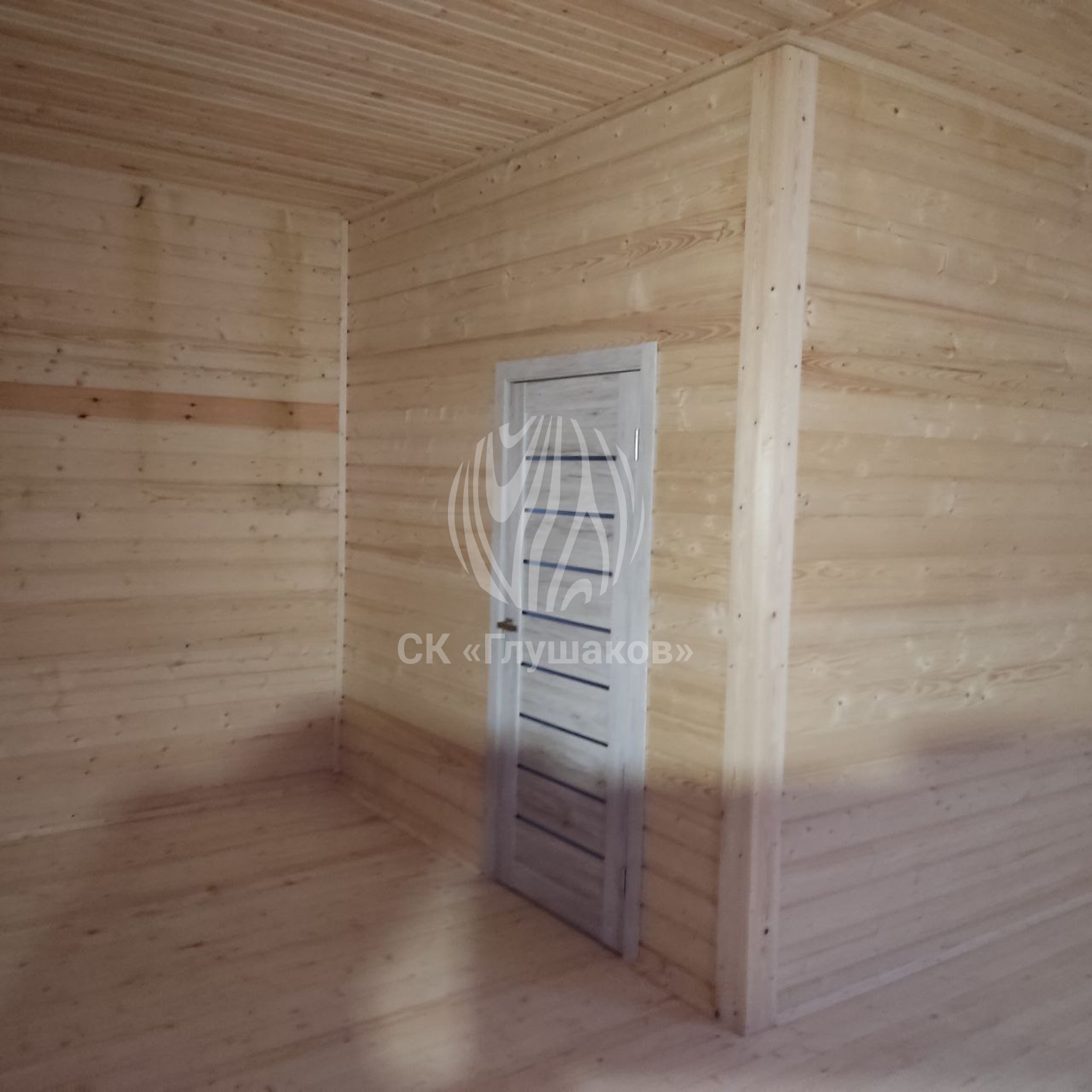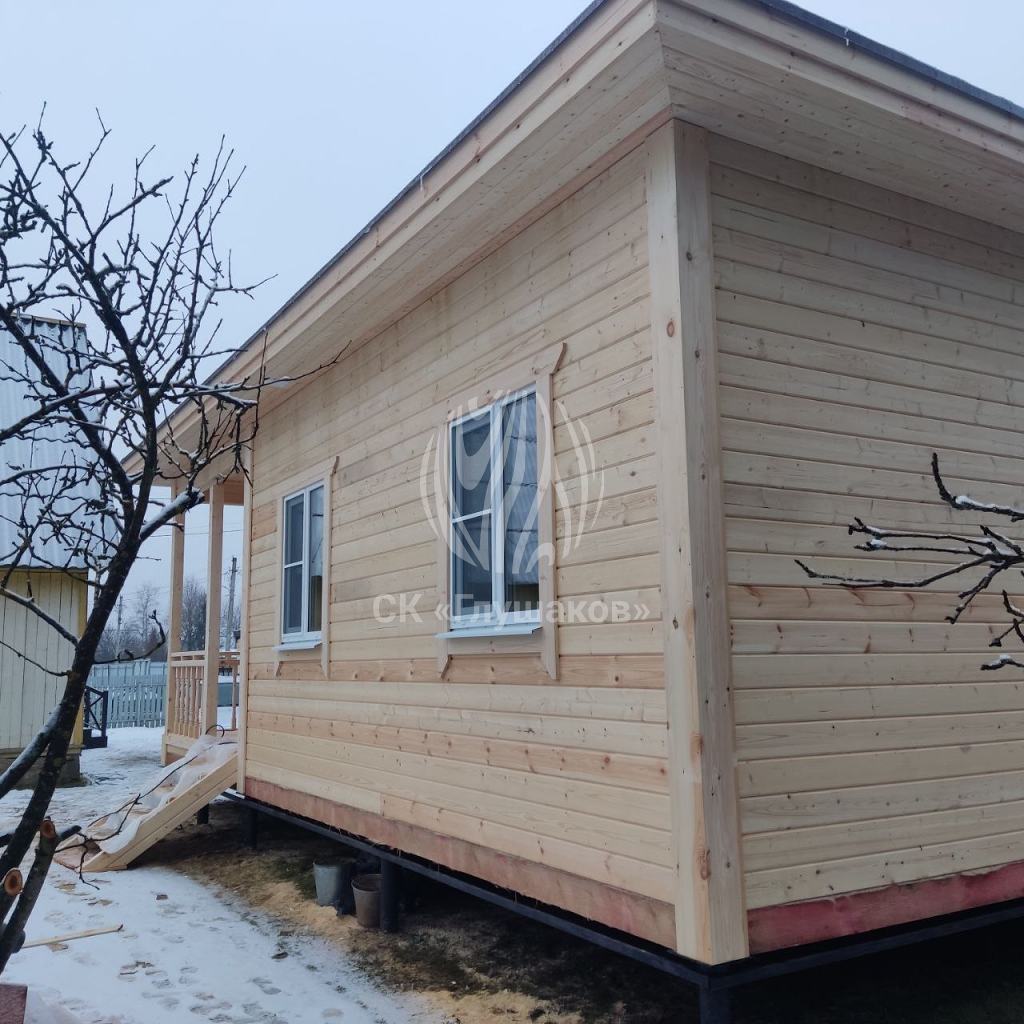 Баня 6 на 9 метров, клееный брус. Строили в деревне Бельское Талдомского района Московской области.
