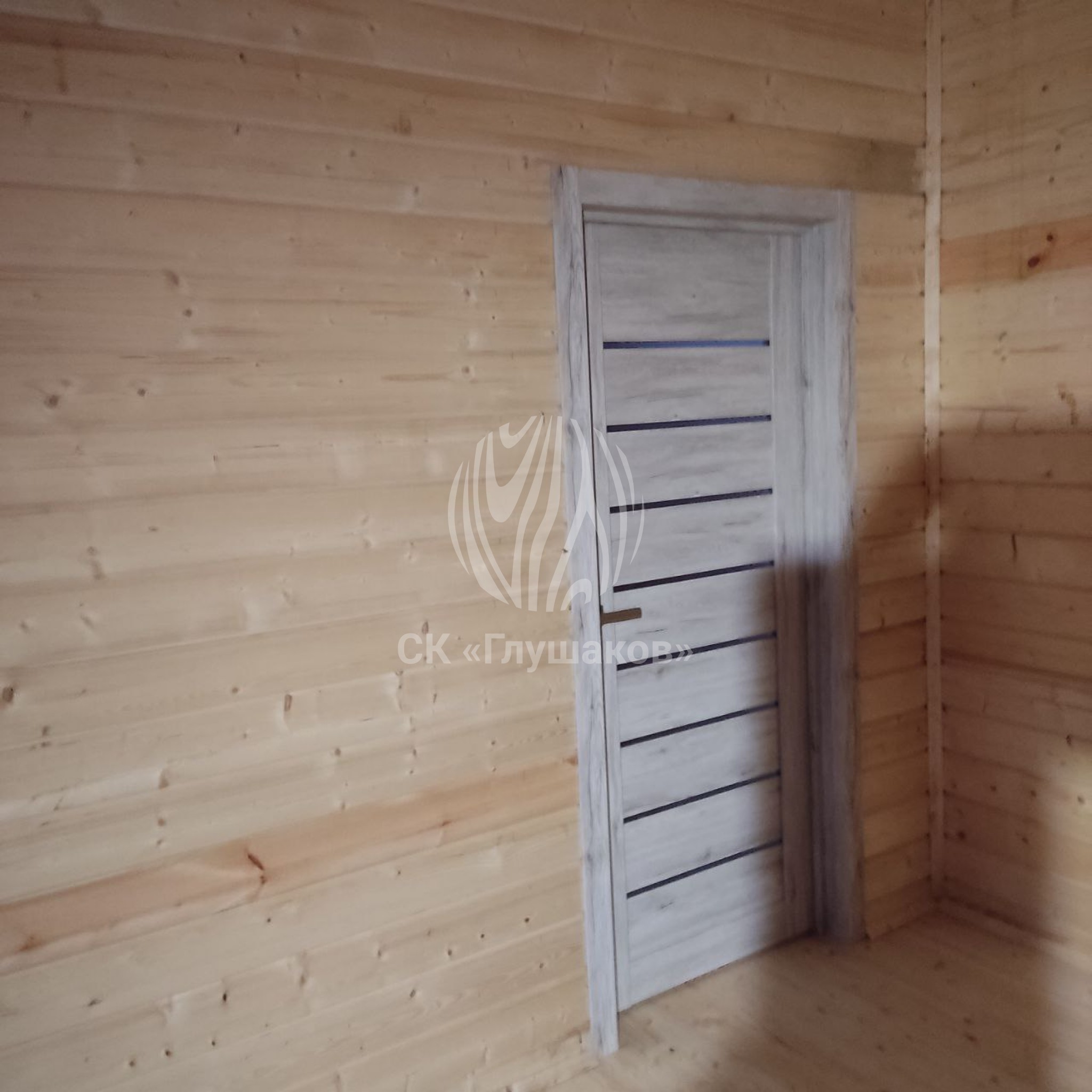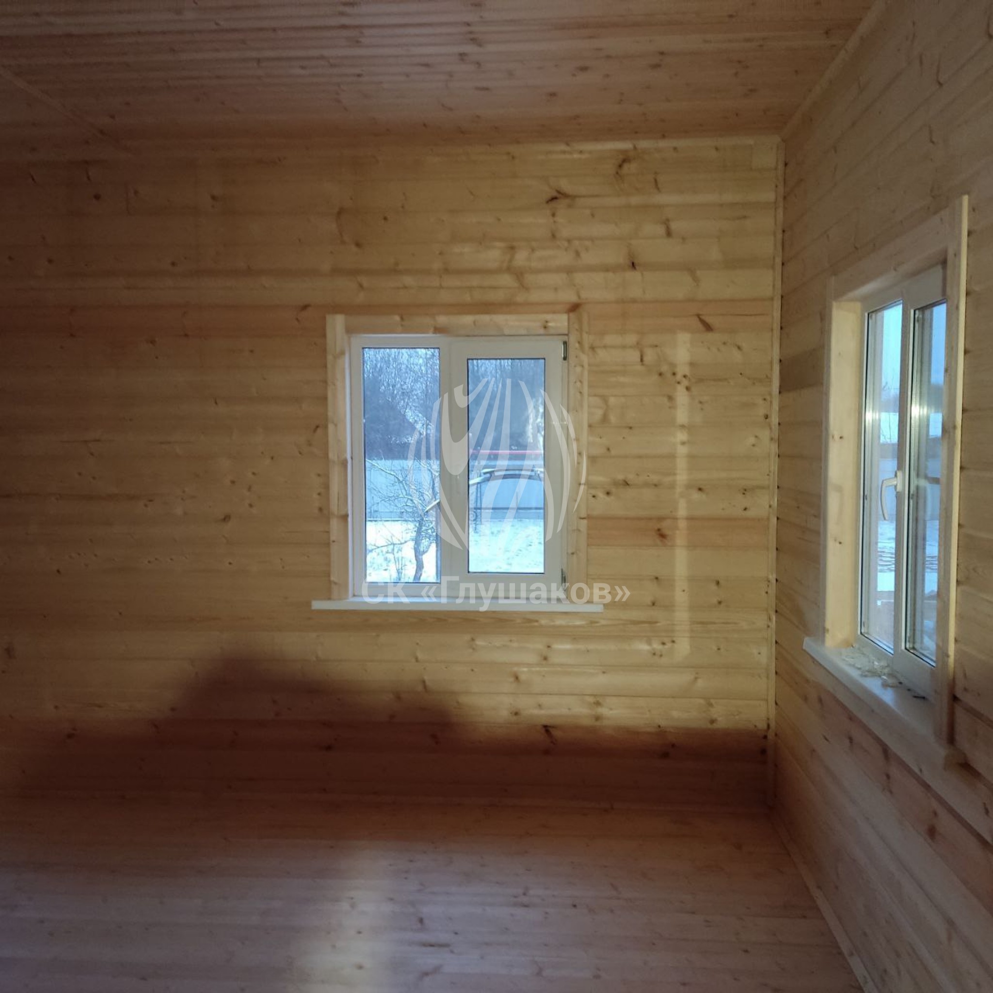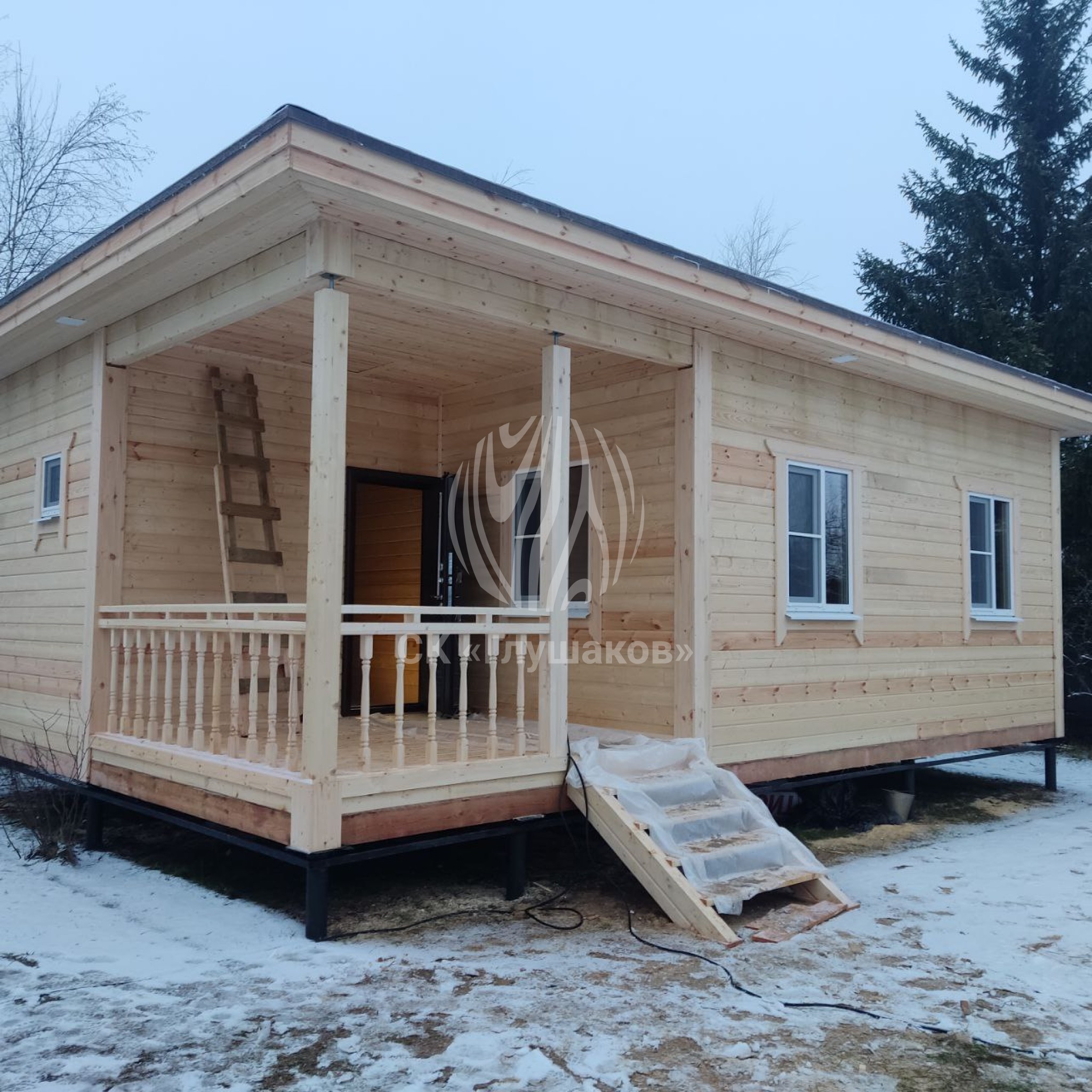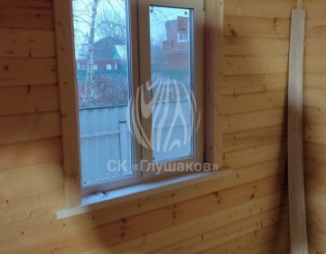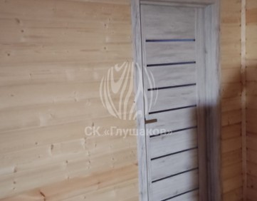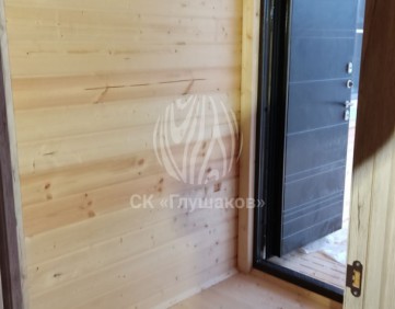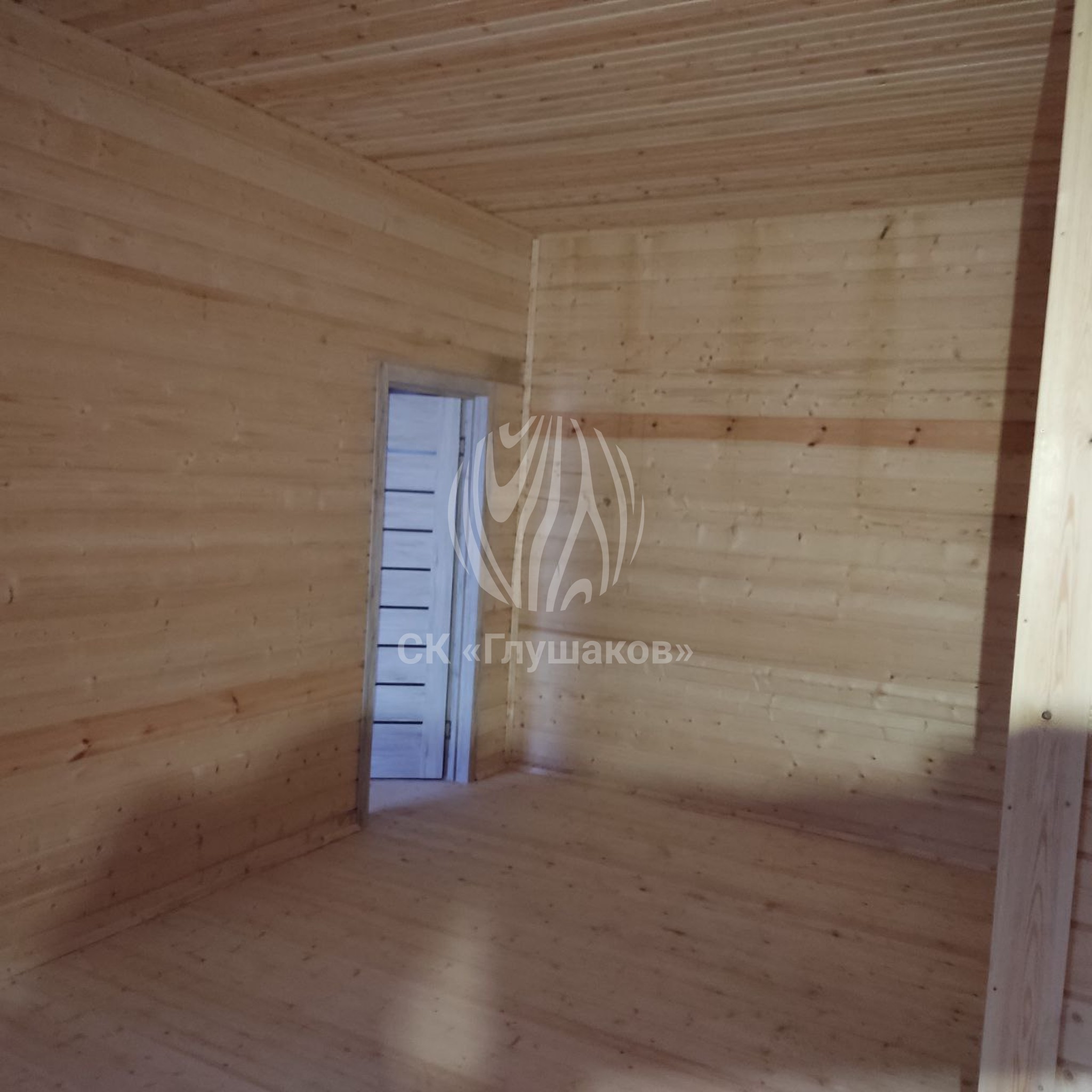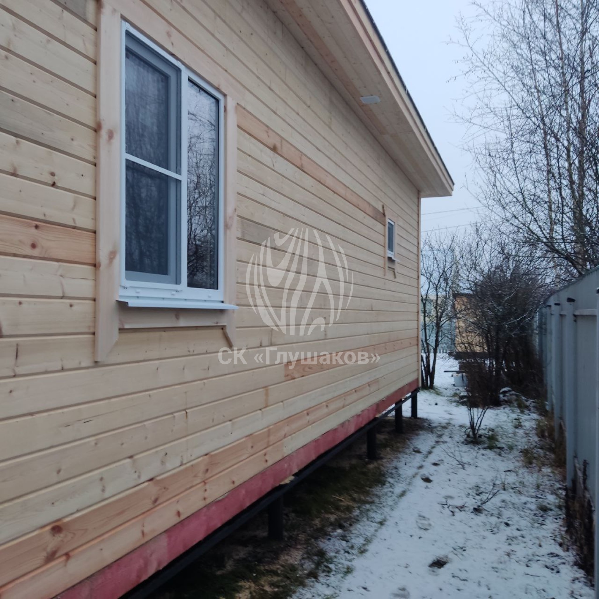 Баня 6 на 9 метров, клееный брус. Строили в деревне Бельское Талдомского района Московской области.
