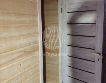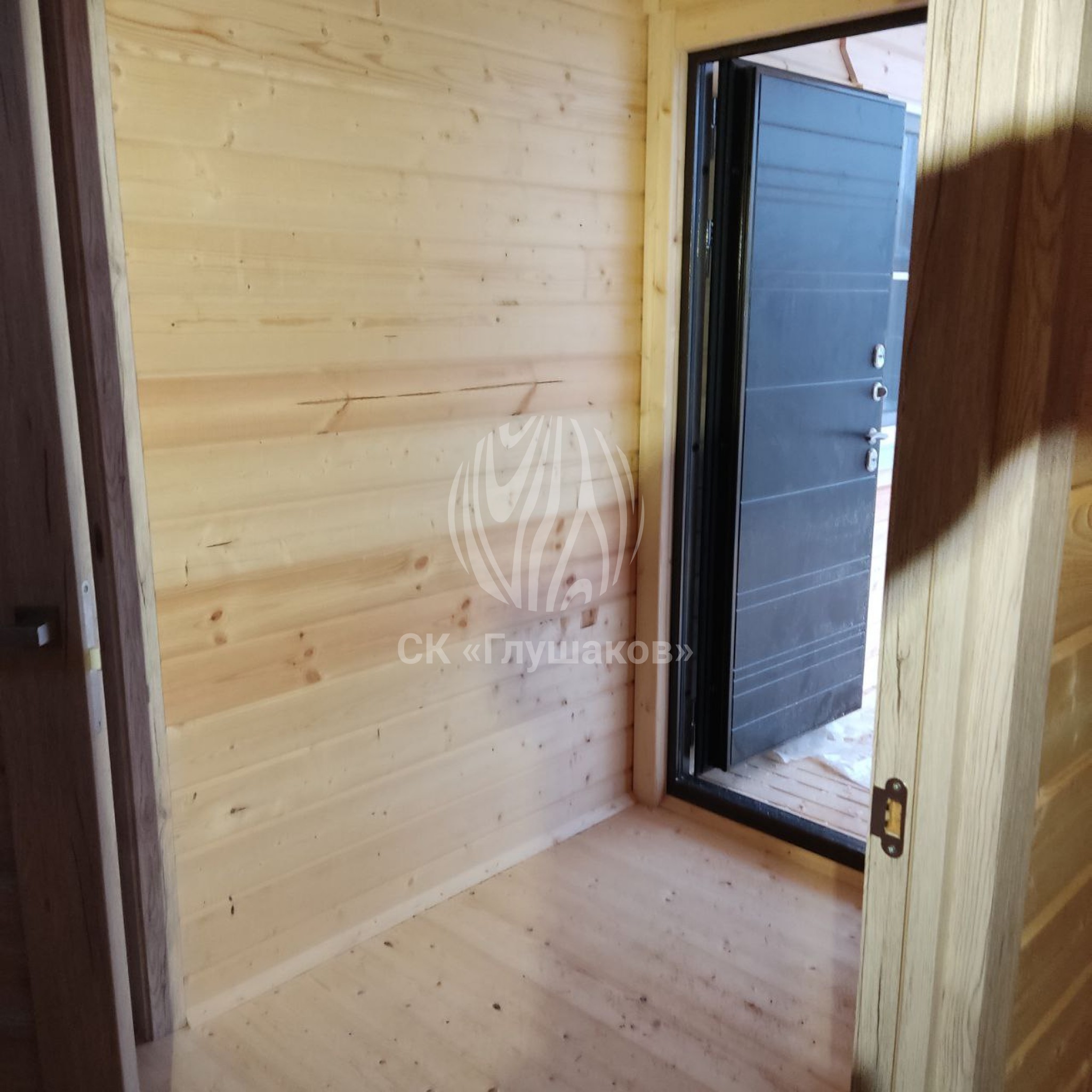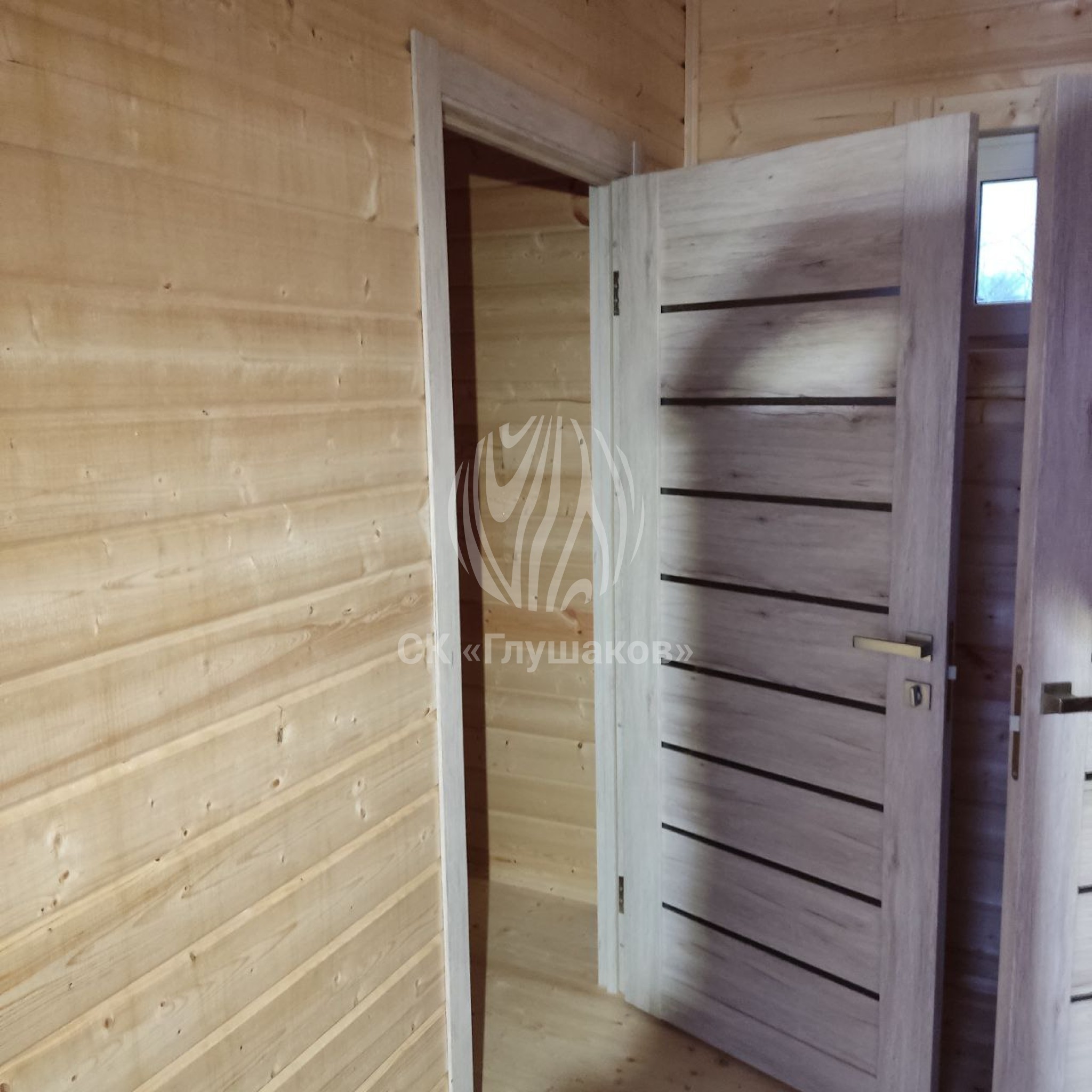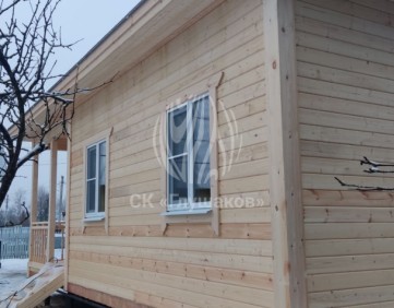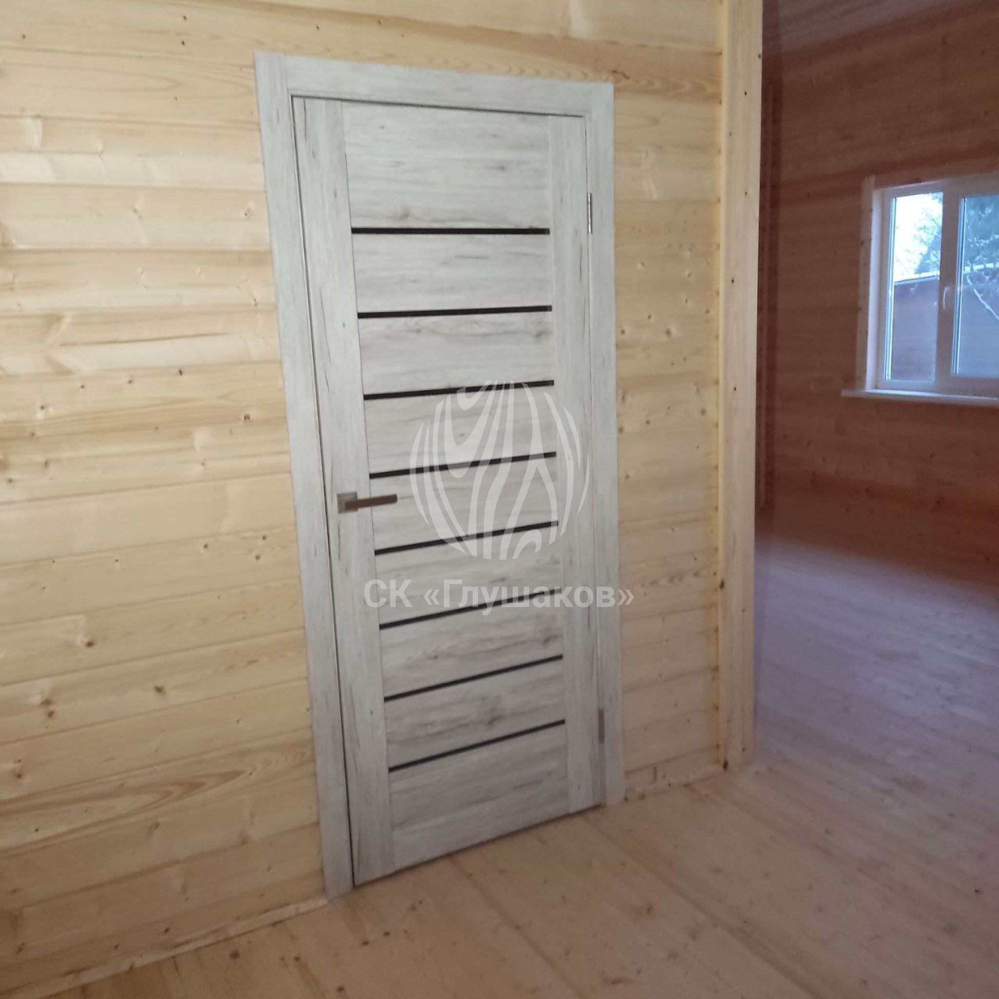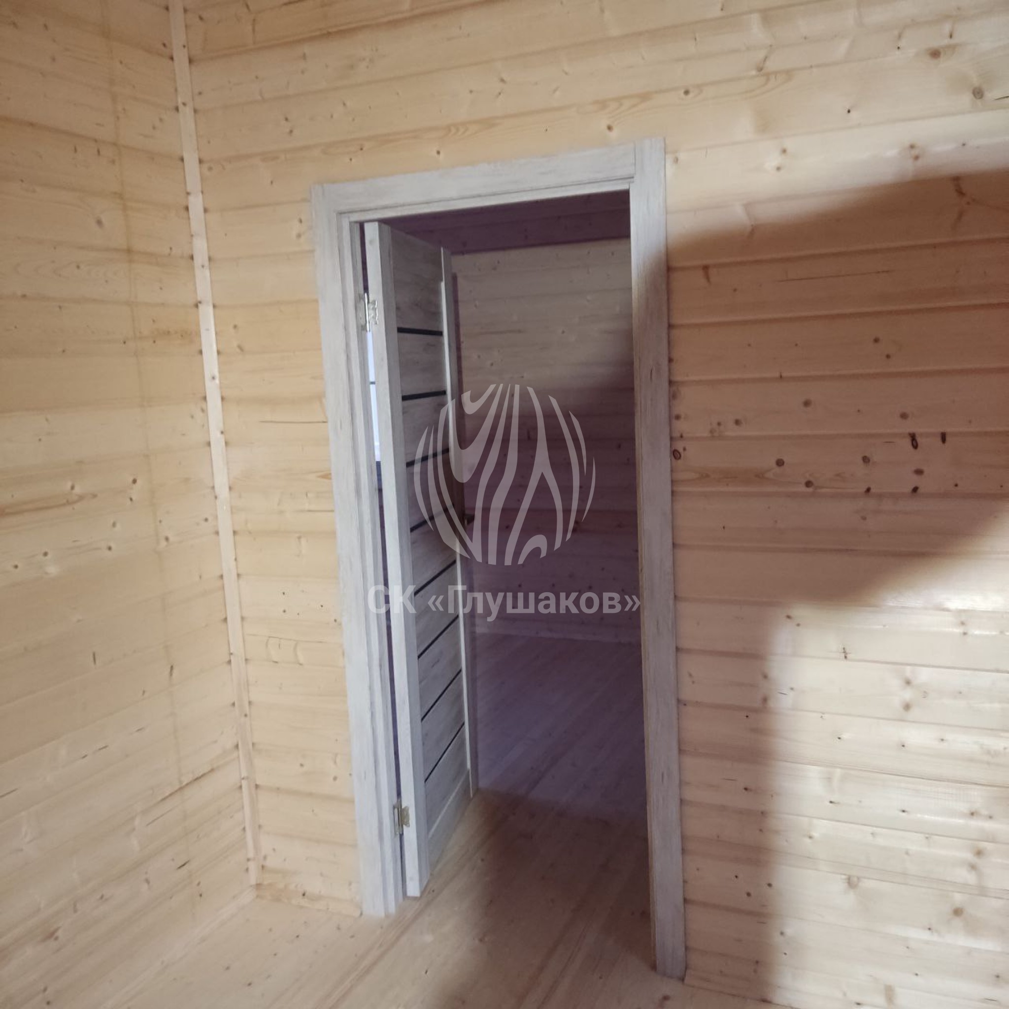 Баня 6 на 9 метров, клееный брус. Строили в деревне Бельское Талдомского района Московской области.